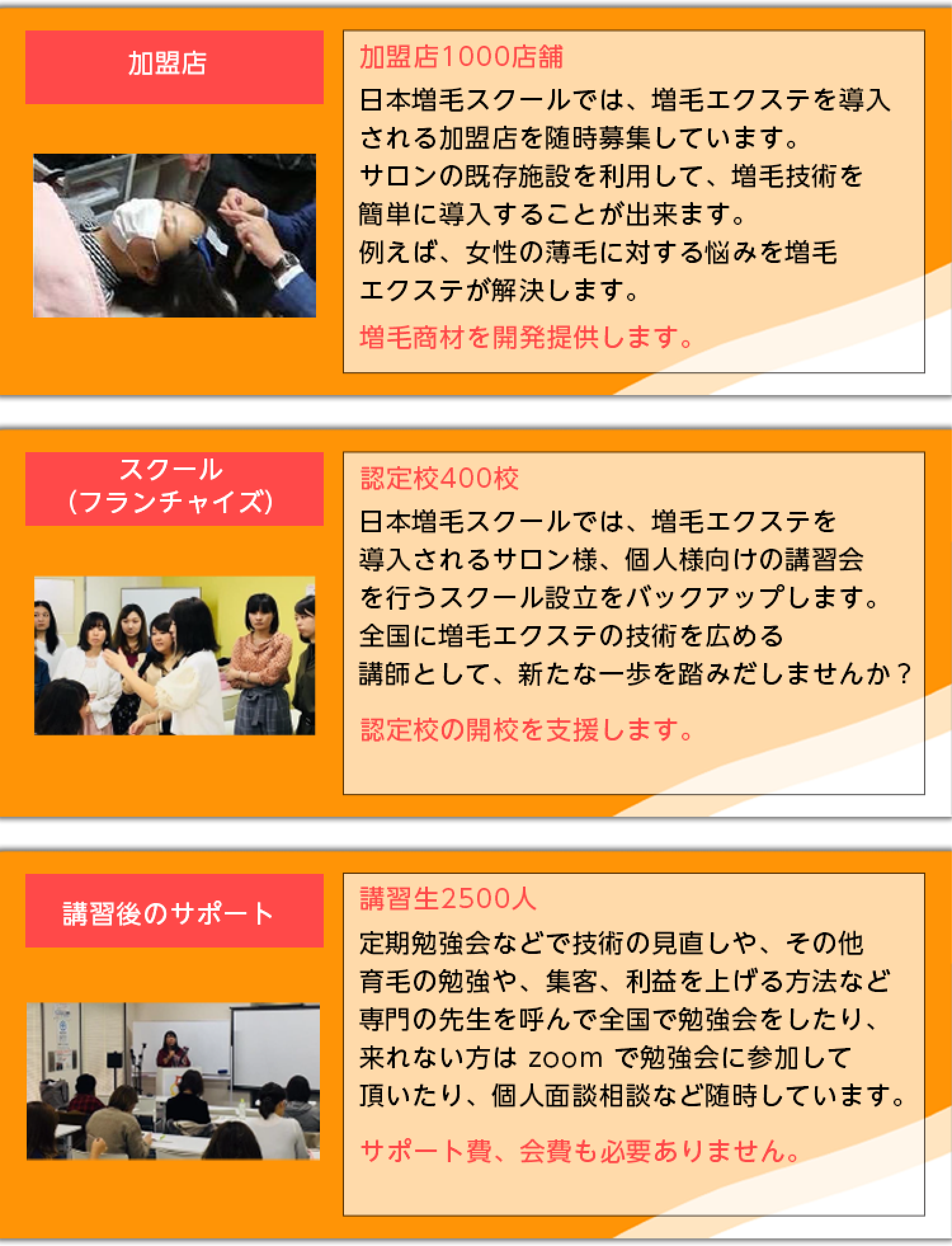 「日本増毛スクール」では、高単価サービスとして「増毛エクステ」を開発して、